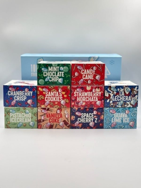 | FLAVORS | HONEY HIVE, SANTAS COOKIES, PISTACHIO ICECREAM, MINT CHOCOLATE CHIP, SPACE CHERRY Z, ELECTRONIC ZKITTLE, COCONUTSBONBONS, BUMBLE BEE JIZZ, APPLE SUNDAE, FRUITS LOOPS, SWEET TEA, CANDY CANE, PUMKIN PIE, GUAVA LIME ICE, 10 PK (MIXED FLAVORS), 20 PK (MIXED FLAVORS), 30 PK (MIXED FLAVORS), 50 PK (MIXED FLAVORS), 100 PK (MIXED FLAVORS), 200 PK (MIXED FLAVORS), 500 PK (MIXED FLAVORS) |