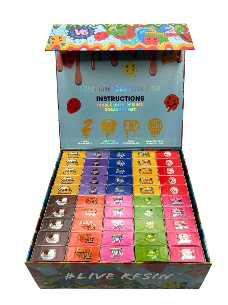 | FLAVORS | MIAMI YAYO, GEORGIA PIE, CACTUS COOLERZ, STRAWBERRY FROSTY, COCONUT MILK, APPLE STRUDEL, 10 PK (MIXED FLAVORS), 20 PK (MIXED FLAVORS), 30 PK (MIXED FLAVORS), 50 PK (MIXED FLAVORS), 100 PK (MIXED FLAVORS), 200 PK (MIXED FLAVORS), 300 PK (MIXED FLAVORS), 500 PK (MIXED FLAVORS) |